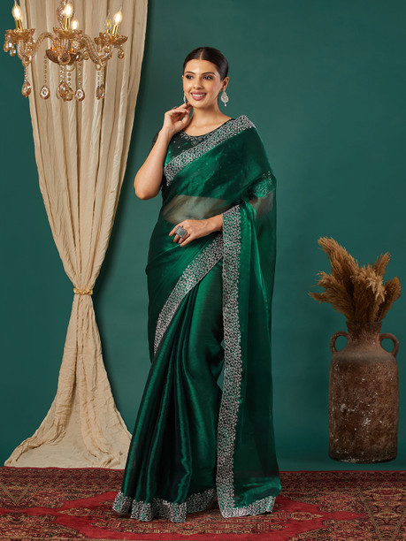 Embellished, Self Design Bollywood Organza, Silk Blend ...
