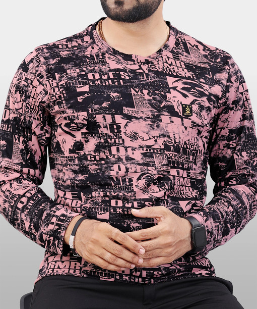 Men Typography Round Neck Polyester Pink T-Shirt