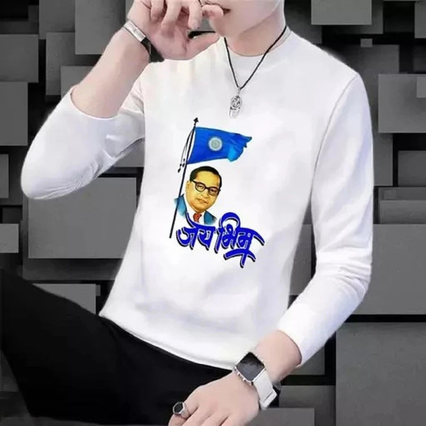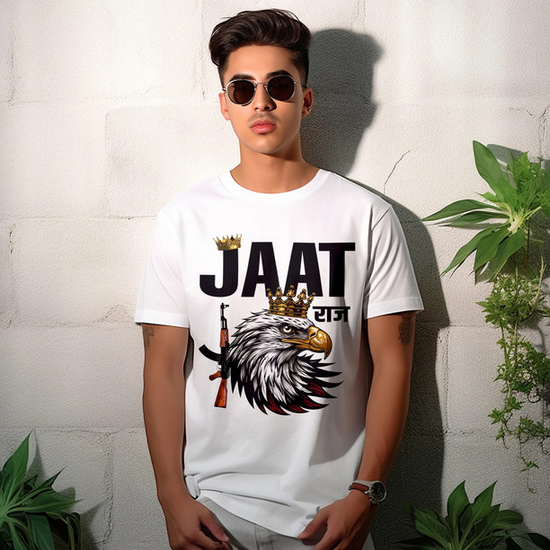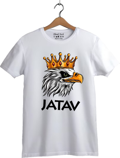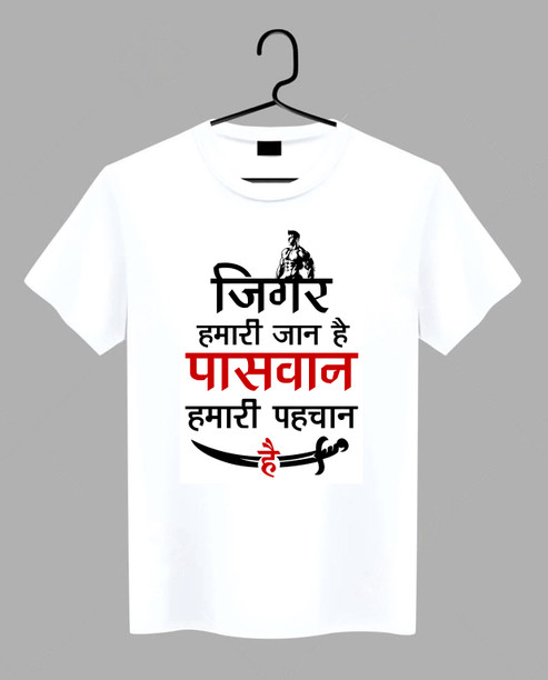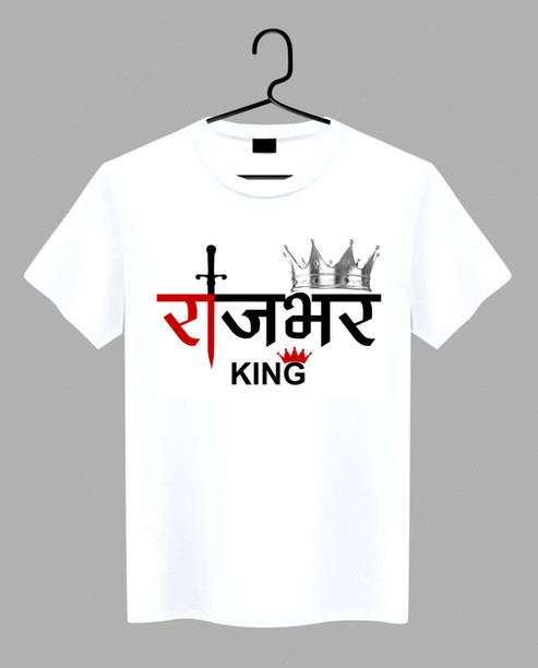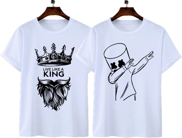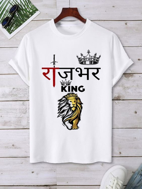 Men Printed, Typography Round Neck Polyester White T-Sh...