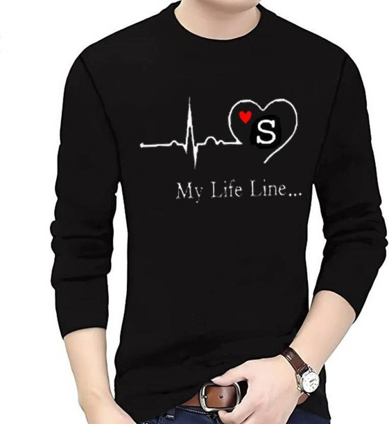 Men Printed, Typography Round Neck Polyester Black T-Sh...