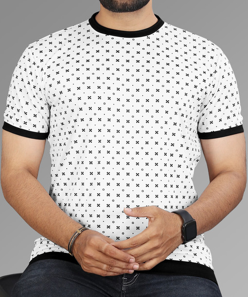 Men Printed Round Neck Polyester White T-Shirt