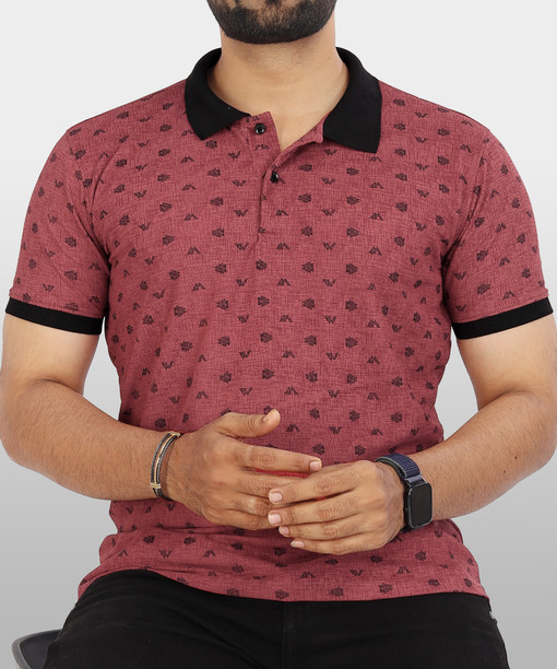 Men Printed Polo Neck Polyester Pink T-Shirt