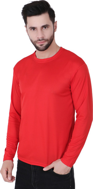 Men Solid Round Neck Polyester Red T-Shirt
