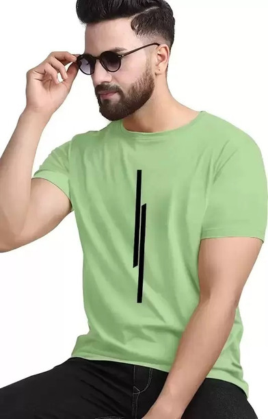 Men Printed Round Neck Polyester Light Green T-Shirt