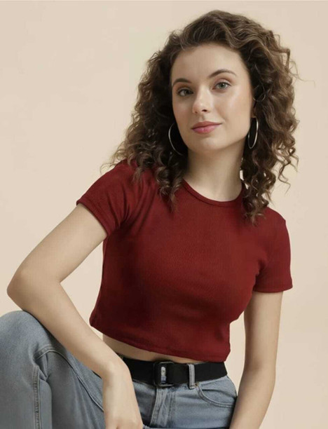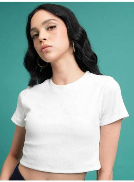 Women Solid Round Neck Cotton Blend White T-Shirt