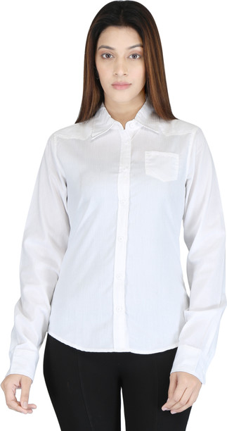 Women Slim Fit Solid Mandarin Collar Casual Shirt